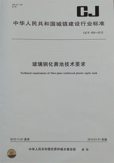 近日,以主编单位河南宜佳环保有限公司编制的《玻璃钢化粪池技术要求》行业标准,由中华人民共和国住房和城乡建设部,于2012年 11 月1日发布,自2013年1月1日起实施,这一标准的出台有效填补了该领域的空白,标志着建筑业中的地下基础设施玻璃钢化粪池产业发展正式进入“标准化”时代。